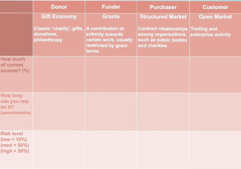 'Cafe conversation' Groupwork: The workshop attendees were split across three tables and asked to discuss 3 questions on funding - rotating between tables every 15 minutes as a new question was revealed.