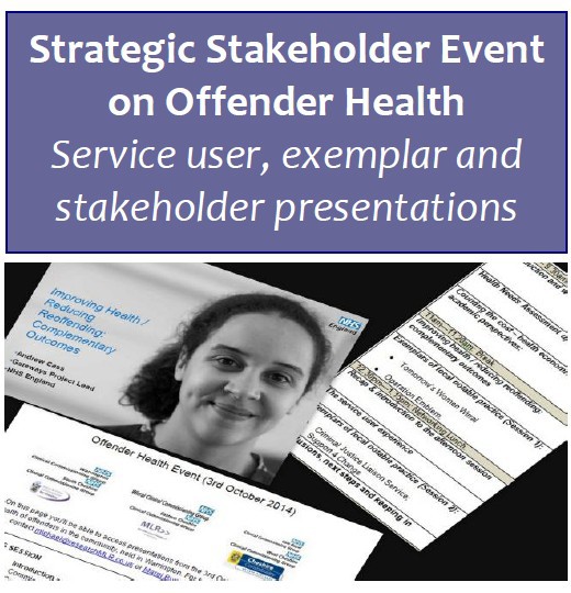 >> An offender health event was held in Warrington in October 2014 to highlight the experiences of local service users, showcase service provider 'exemplars' and enable stakeholders to present and network - to ultimately hone commissioning ideas.